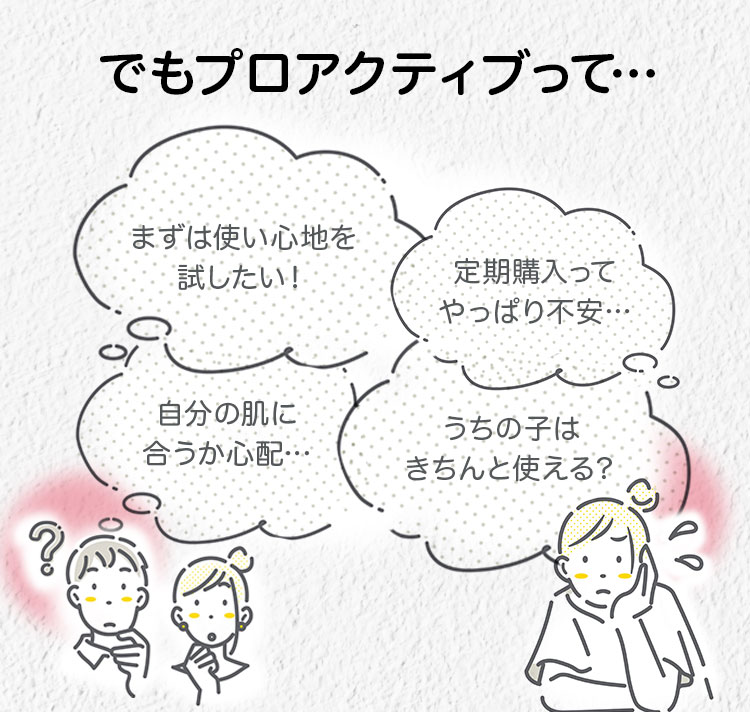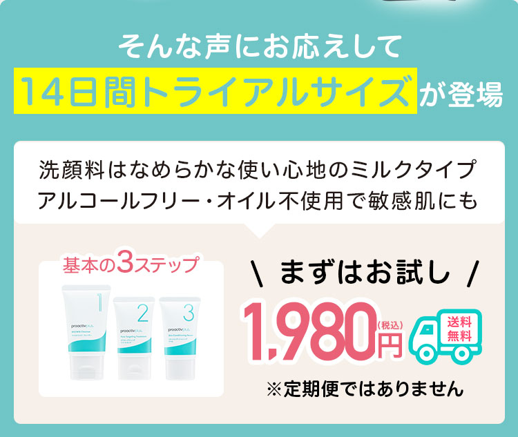 定期セットをご注文お客様は、便利でお得な「プロアクティブ定期便」に自動登録となります。(トライアルセットをご注文のお客様はプロアクティブ定期便への登録はありません) お使いの商品がちょうど無くなる頃に次の商品をお届けいたします(二回目の面倒なご注文は不要になります)。お届け商品・お届けサイクルの変更や、サービスの中止はマイページ・LINEにて承ります。 万が一、お肌に合わなかった場合には「安心の60日間返金保証」が、お客様を最後までサポートします。 詳しくはこちら