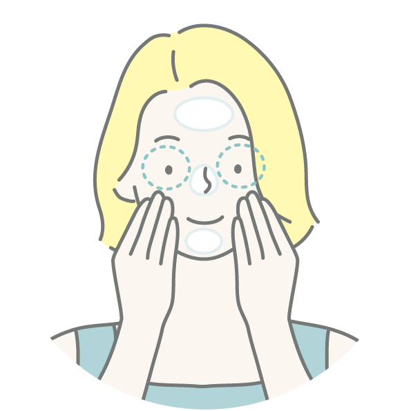 目の周りを避けて顔全体に薄くのばしてから、